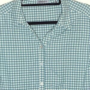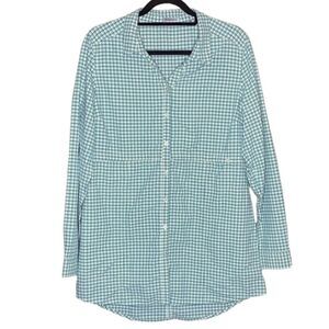 Toad&Co Wm’s Sz Lrg Green White Gingham Debug UPF Lightweight Woven Tunic Shirt