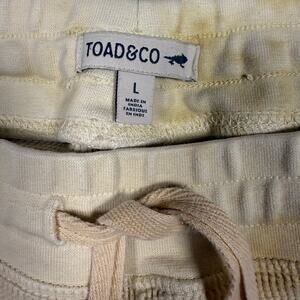 Toad & Co Women's McCloud Organic Cotton Wide Leg Cropped Yellow Tie Dyed Waffle Pants - Large. In excellent preowned condition - minimal signs of wear. No stains or flaws. MSRP $85.