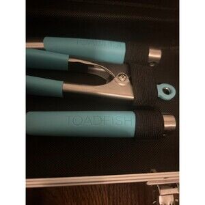 The BBQ Grill Accessories Set from Toadfish includes a chef's spatula, grill tongs, and fork, all made of durable stainless steel. The set is designed for outdoor cooking and includes everything you need for a successful barbecue. The teal and stainless steel color scheme adds a stylish touch to your grill, while the sturdy construction ensures long-lasting use.