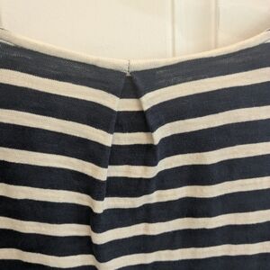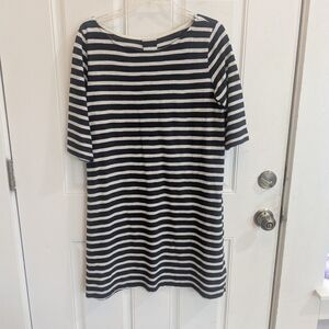 Elevate your wardrobe with this elegant striped dress. Featuring a classic navy and white design, it's perfect for any occasion.