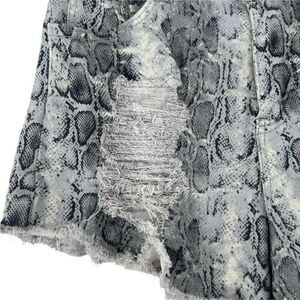 Toast Jeans Shorts Python Snake Pattern Distressed Cut Off High Rise Gray Stretch Denim Casual Bohemian Festival
