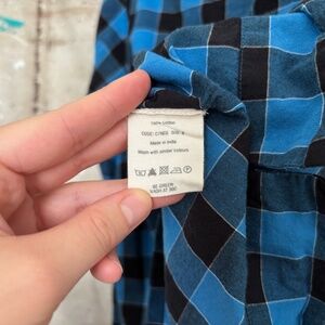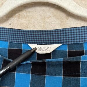 Crafted from checked cotton to an easy shape with a boat neck, then finished with a hanging loop at the nape.