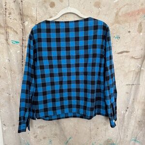 Checked cotton. Easy shape. Boat neck. Dropped sleeves. Side hem slits. Buttons on the shoulders. Gingham.