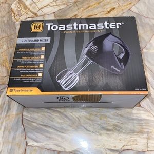 Toastmaster makes top-of-the-line toasters, grills, and all sorts of countertop cooking equipment. This hand mixer features a5 speed setting, 125 watt motor, two beaters, thumb tip control, and beater ejection control. Measures 8.1''L x 3.9''W x 5.9''H.
