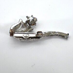 Tobacco Smoking Pipe Silver Tone Brooch Lapel Pin Tie Tack With Rhinestone
