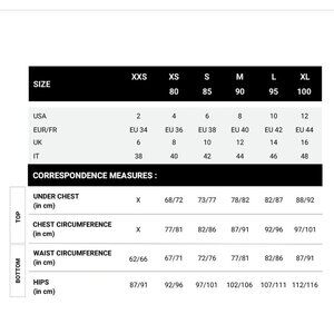 The model is 1m76 tall and wears size XS (Bust: 83 cm, Waist: 62 cm, Hips: 91 cm)