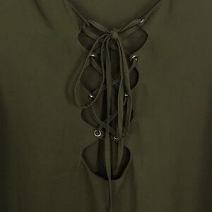 Tobi Army Green Lace Up Sheer Long Sleeve Blouse Women's Size Small