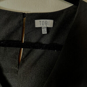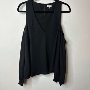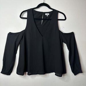 Tobi Black Cold Shoulder Long Sleeve Flowy V-Neck Keyhole Back Blouse M