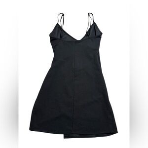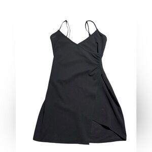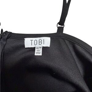 Tobi Black Mini Dress | XS | Ruched Slit Spaghetti Strap LBD