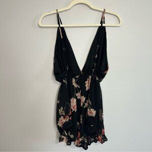 Tobi Black Pink Floral Deep V-Neck Sleeveless Flowy Romper Women’s Size Small
