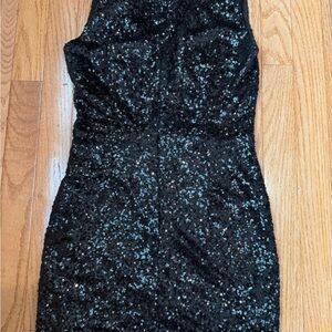Tobi Stylish black dress with sparkling sequins. Ideal for special occasions. deep V-neck mini dress