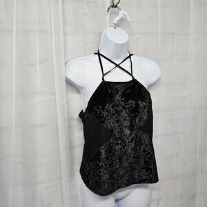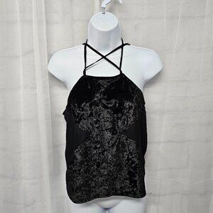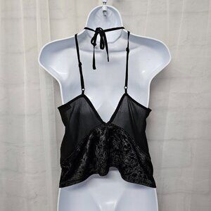 Tobi Black Velvet Sheer Tank Top Y2K Goth Boho Fairy Club Party S