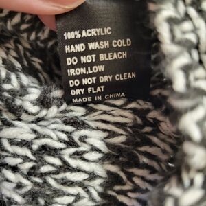 Tobi Black and white zip-up cardigan sweater with looped boucle knit. Good pre-owned condition, gently worn, with some light color fading and pilling.