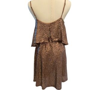 Tobi Bronze Sequin Flounce Mini Dress Women’s Size M