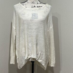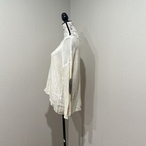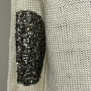 Lightweight cream sweater with sequin details on elbow. Great for any season.