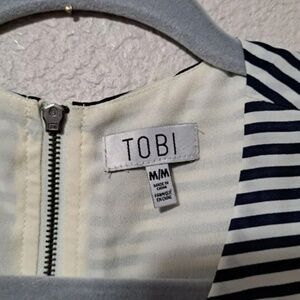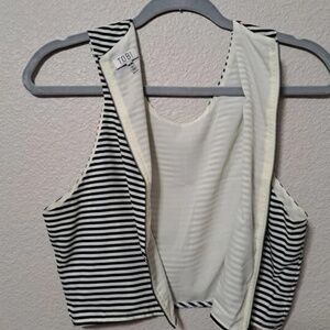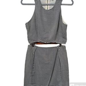 Tobi Crop Halter Neck Top Mini Pencil Skirt Set Navy White Strip Coastal Trendy