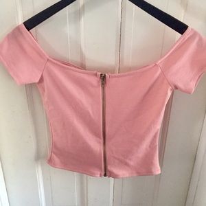 Super cute Tobi off the shoulder cropped pink top. Back zipper adds the perfect accent.