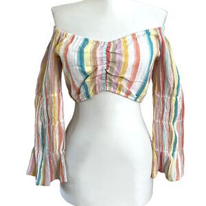 * Tobi Dream Girls Crop Top M Striped Rainbow Festival Boho Hippie Flared sleeve