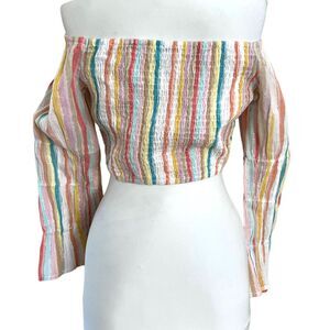 Tobi Dream Girls Crop Top M Striped Rainbow Festival Boho Hippie Flared sleeve