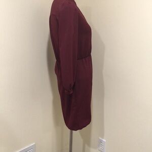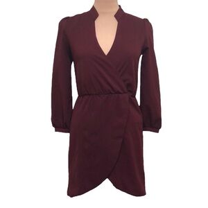 Tobi Dress Size Small Maroon Red Long Sleeve Faux Wrap Tulip Hem