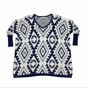 Tobi Emmy Aztec Oversized Sweater Size S / M Blue Print Dolman Sleeve Slouchy