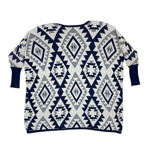 Tobi Emmy Aztec Oversized Sweater S/M Blue Dolman