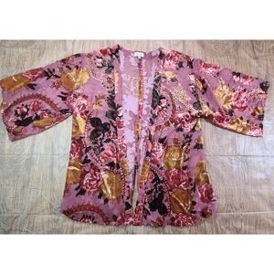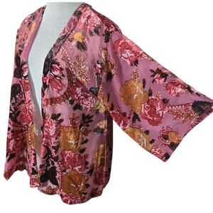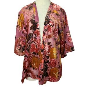 Tobi Floral Velvet Burnout Kimono Open Cardigan Boho Whimsygoth XS