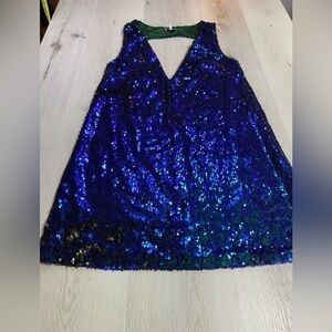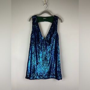 Tobi Fully Sequin Backless Deep V Mini Dress Eras Tour Blue/Green, Size Small