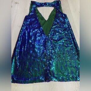 fully sequin Blue/Green plunging V backless mini dress from Tobi