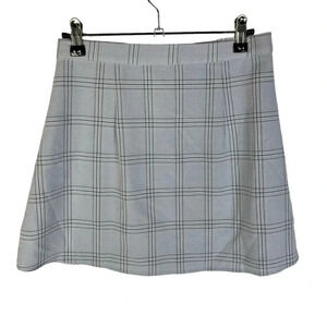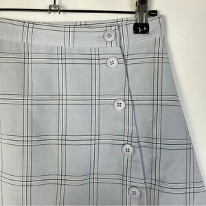 Tobi Light Blue Plaid Button Side Mini Skater Skirt S