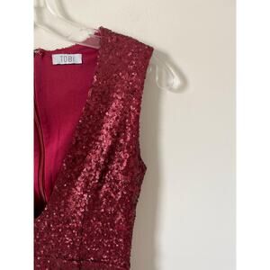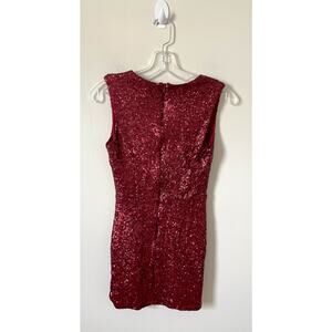 Tobi Low Cut V-Neck Sequin Bodycon Mini Dress Ruby Red Size Small