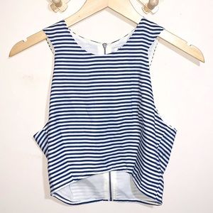Size Small. New with tags. Navy & white striped. Zipper closure in the back. Round neckline.
