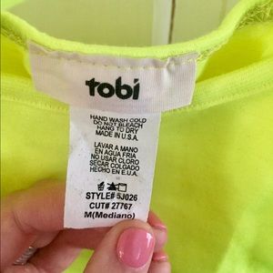 Super fun neon yellow crop top with cross back by Tobi. Never worn!