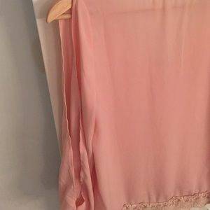 This silky pale pink blouse from Tobi is a size S! It features lace detail at the bottom! This top has open sleeves that make it the perfect shirt for a night out!!!!! It is in good condition there is a small spot where the lace is parted from the blouse