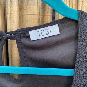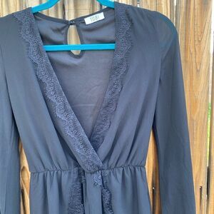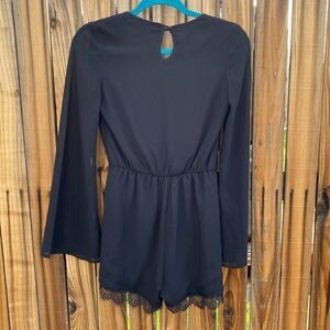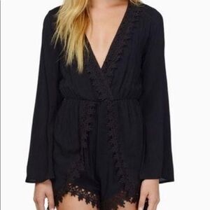 Tobi Plunging V Neck Crochet Laced Romper Black Size XS