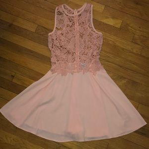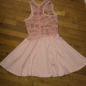 Cute, light pink dress perfect for casual and formal occasions alike. Embroidered top pairs perfect with a slip dress or bralette