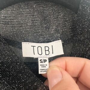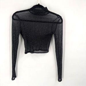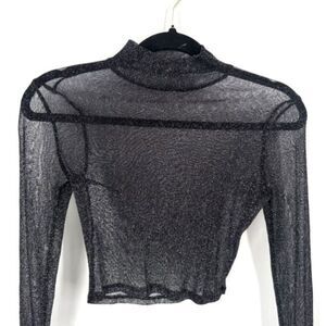 Tobi Sheer Black & Silver Glitter Crop Top Long Sleeve Mock Neck Small
