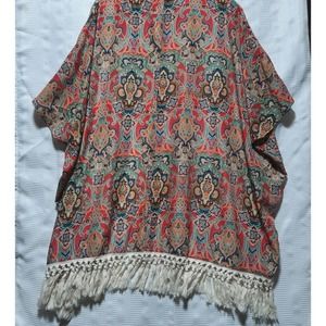 Tobi Sheer Multi Colored Kimono w/ Cream Colored Tassels On The End. Super Light Weight and In Great Condition. Perfect for Summer