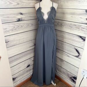 Tobi Slate Grey-Blue Lace Backless Side Slit Maxi Dress Size Small