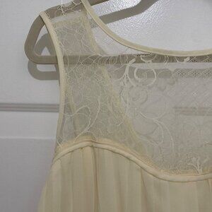 Tobi Sleeveless Top Womens M Pleated Sheer Lace Cream Cropped Boho Blouse