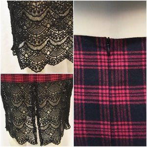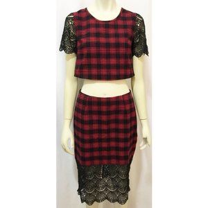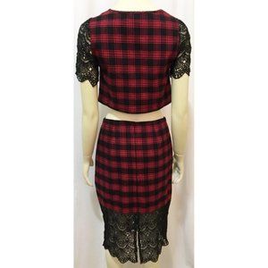 Tobi Small Red Plaid & Lace Skirt and Top Set NWT