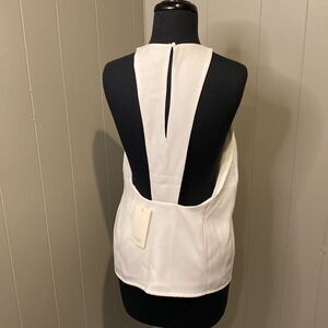 Tobi Small White Halter Top Tank Neck Button Sheer Lining 100% Polyester V-back Round Hem