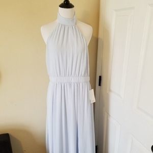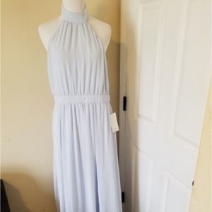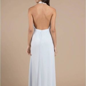 A chiffon pleated maxi dress is always a winner when the dress code says formal. The Light Blue Tara Halter Maxi Dress ups the ante with a sexy exposed back and dramatic double slit at the front. Materials & Care: Polyester Imported Dry Flat
