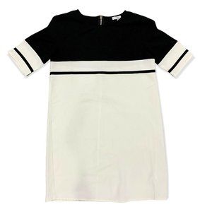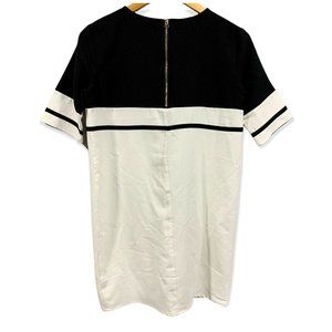 Tobi White Black Color Block Mini Dress Size S. Has faint stain on lower right sleeve. No visible holes, rips, other stains or tears. In very good preowned condition. Please review photos for details of wear/condition & Approximate Measurements for fit. Thank You for Stopping Through!
