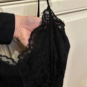 Tobi Women’s Black Lace Prom Formal Maxi Slip Dress High Slit
