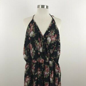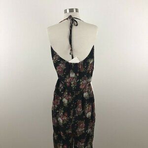 Tobi Womens Medium Jumpsuit Chiffon Floral Black Halter Neck