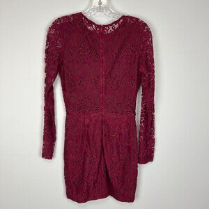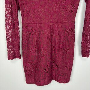 Tobi Womens My Lace Or Yours Bodycon Mini Dress Burgundy Long Sleeves size Small