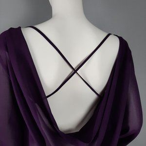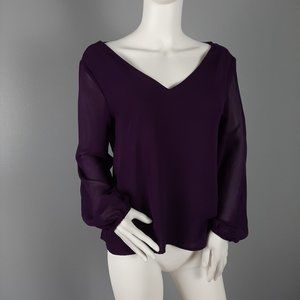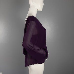 Tobi Womens Sheer Blouse Size Medium Purple Strappy Open Back V-Neck Long Sleeve