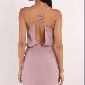 Mini wrap dress in the color rose. Adjustable cami straps that criss cross at the back. Asymmetrical skirt and open back! Great condition. Worn once.