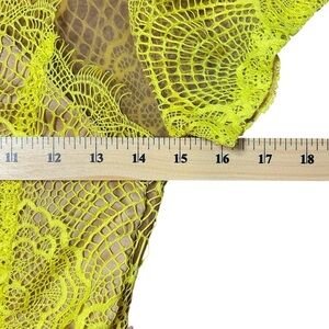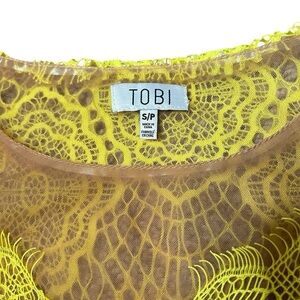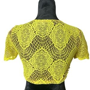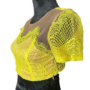 Tobi Yellow Green Lace Scalloped Brown Mesh Cropped Women’s Size Small